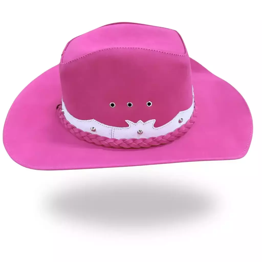Chapéu Americano Feminino Rosa com Branco com Estrela em Couro Nobuck